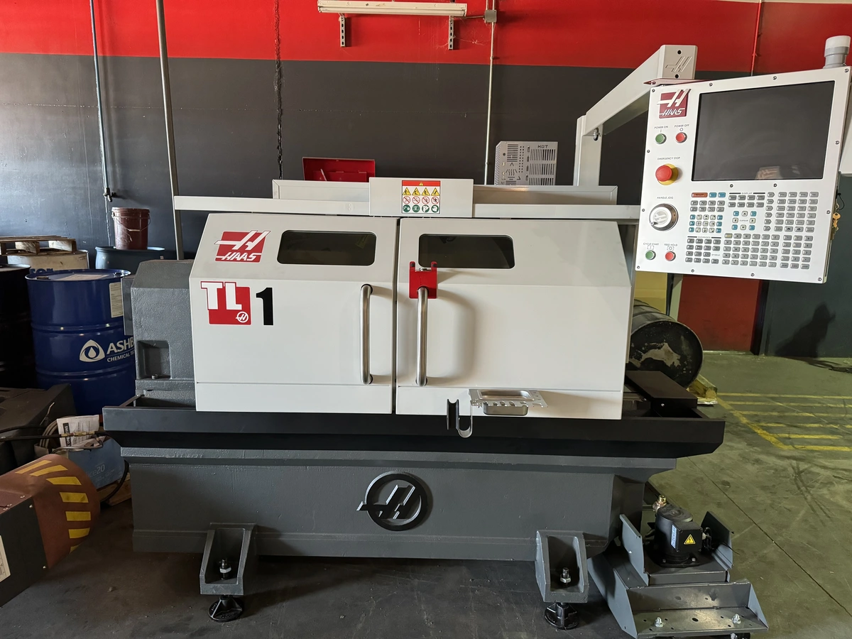 For sale: 2022 HAAS TL-1 CNC Lathe, lightly used, 20" swing, 762mm length, 12hp, Max 2000 RPM. Includes Haas control, 8-pos tool changer, coolant system, conveyor, electronic hand wheels. No tailstock/live tooling/sub spindle.